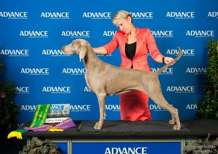 Ashlaren Weimaraners are recognised nationally and internationally as the ONLY Australian Weimaraner kennel to have bred BACK TO BACK BEST IN SHOW AUST WEIMARANER NATIONAL WINNERS. This was proudly achieved at the 2014 Weimaraner National show (Sydney) and again at the next Weimaraner National held in Melbourne in 2017 from an entry of over 200 Weimaraner’s. The 2023 Weimaraner National Best of Breed was produced from Ashlaren lines.